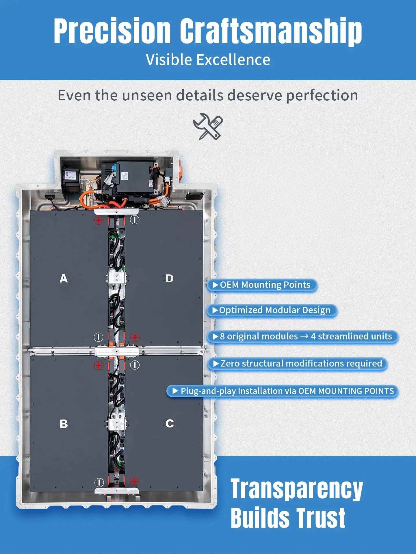 If you are fully prepared and willing to purchase battery modules, we will provide you with installation instructions/videos and all wiring harnesses/installation accessories. If you have any questions during the installation process, please feel free to contact our engineers.